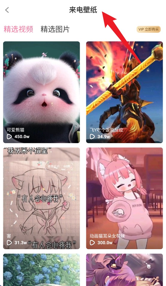 2、“来电壁纸”页面收录多款热门来电视频壁纸,点击即可预览并完成设置,素材种类丰富。