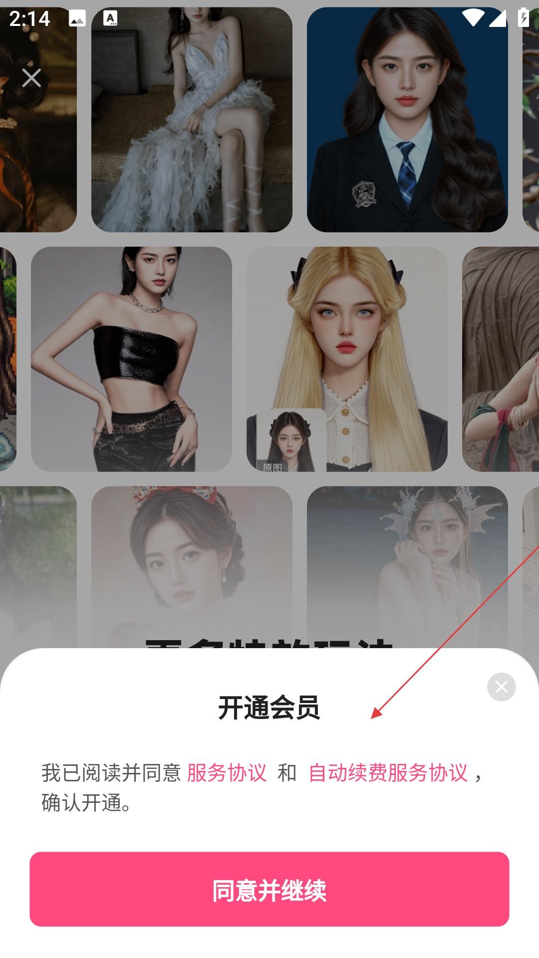 2、进入乐拍APP会员开通页,确认同意相关协议后,点击同意并继续,完成开通获取服务权限。