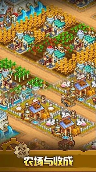 1、 农场经营:开垦土地、播种作物、饲养动物,合理规划布局以提升资源产出效率。