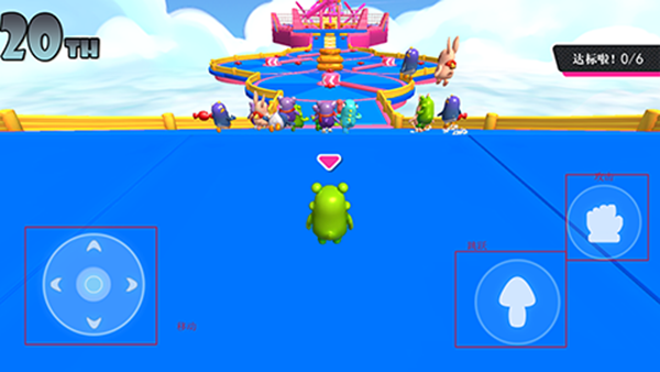 3、 跳跃攻击:右侧设有跳跃与攻击按钮,玩家可借此躲避障碍或干扰对手,增加竞技策略性。