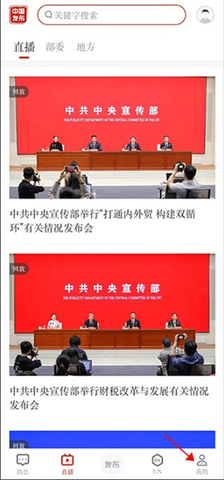 1、打开中国发布 APP,在界面中找到并点击【我的】。