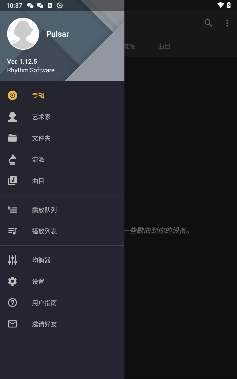 2、提供专辑、艺术家、文件夹及流派相关服务,可便捷管理并播放音乐。
