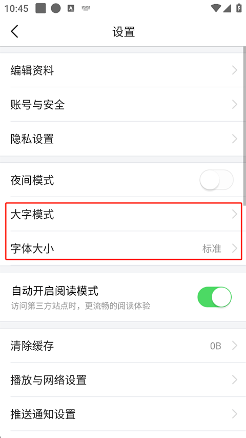 2、点击“字体大小”或“大字模式”;