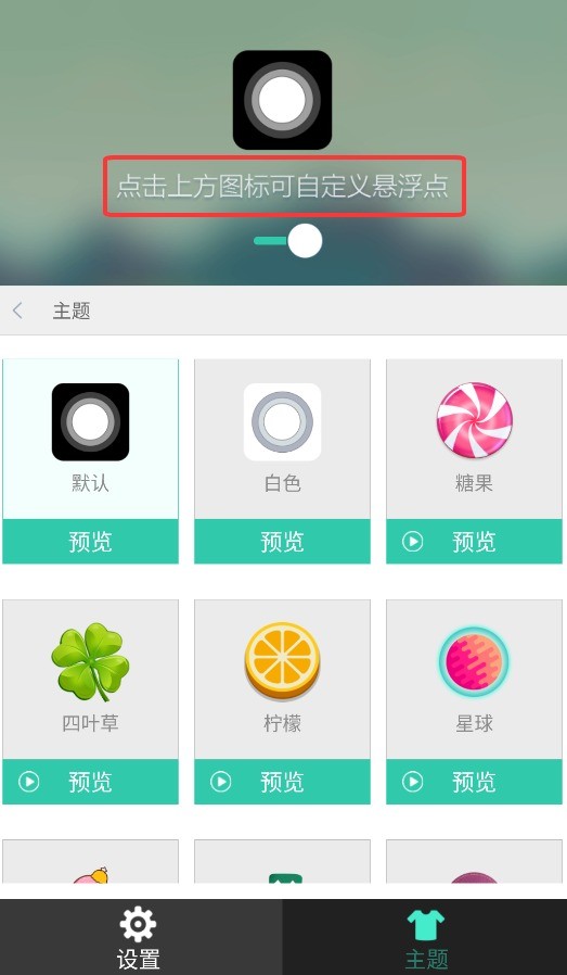 3、主题皮肤多样,内置多款风格任人挑选,悬浮点大小和透明度可自行调节,风格极简。