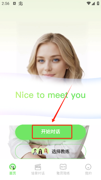 2、启动软件后,找到并点击“开始对话”按钮,即可进入口语练习界面。