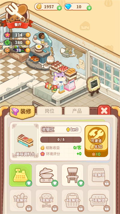 2、 多类型店铺经营:不止甜品店,还可拓展至咖啡馆、超市等多种业态,每种店铺有独立运营逻辑。