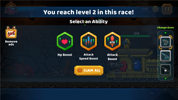 2、 武器系统升级:击杀敌人可积累熟练度,达到一定条件后选择强化伤害、射速或弹夹容量等属性提升战斗力。