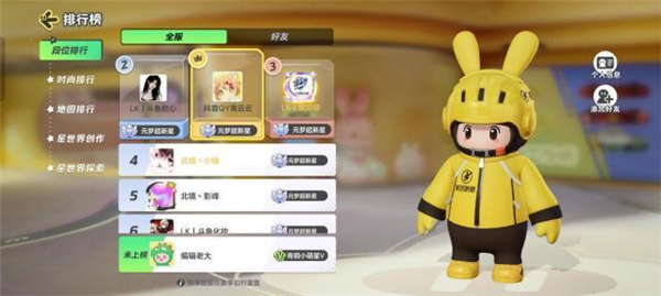 3、榜单100名开外可以获得元梦幸运星段位头衔,前100则是元梦守望星,前10则为元梦祈愿星也就是最高段位。