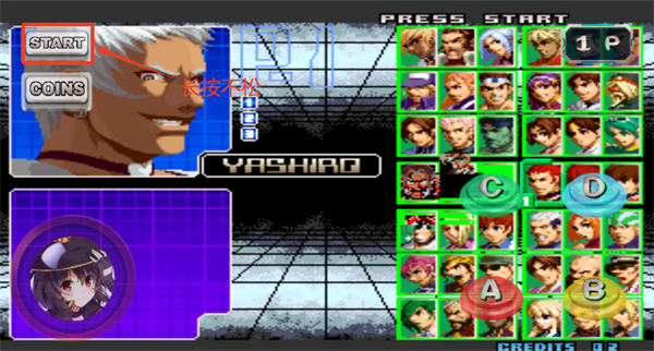 而拳皇2002风云再起则只需要将选框移动至中间隐藏区域即可选择。