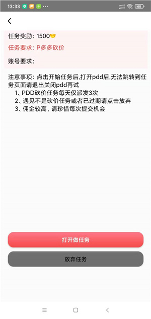 3、收到任务后,不要切换到其他应用程序或在任务界面停留太久。如果有以上操作,将自动视为放弃任务。