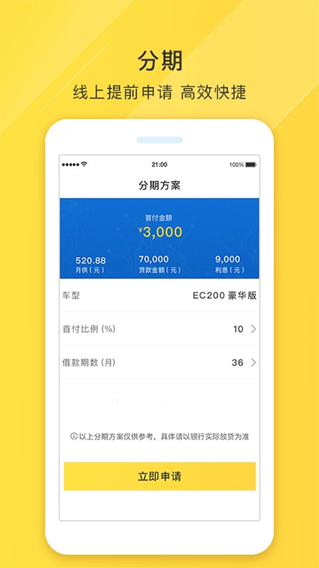 分期方案由用户自主设计,可以完全按照用户的意愿申请;