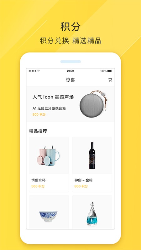 惊喜:即积分商城,每次消费都会产生相应积分,累积的积分可用于在积分商城购买心仪的小商品,惊喜连连!