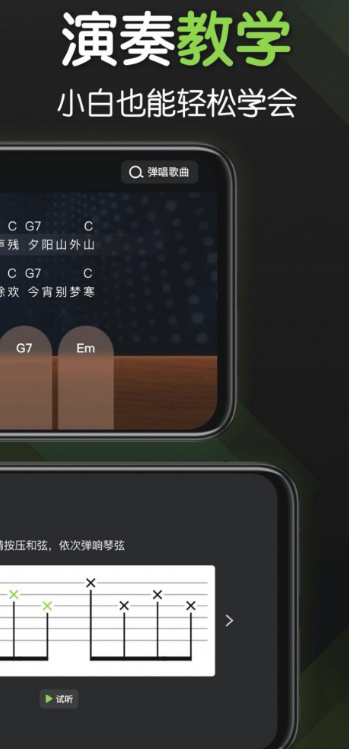 1、主打音乐模拟的音乐软件,它可以很快的帮你练习吉他乐曲。