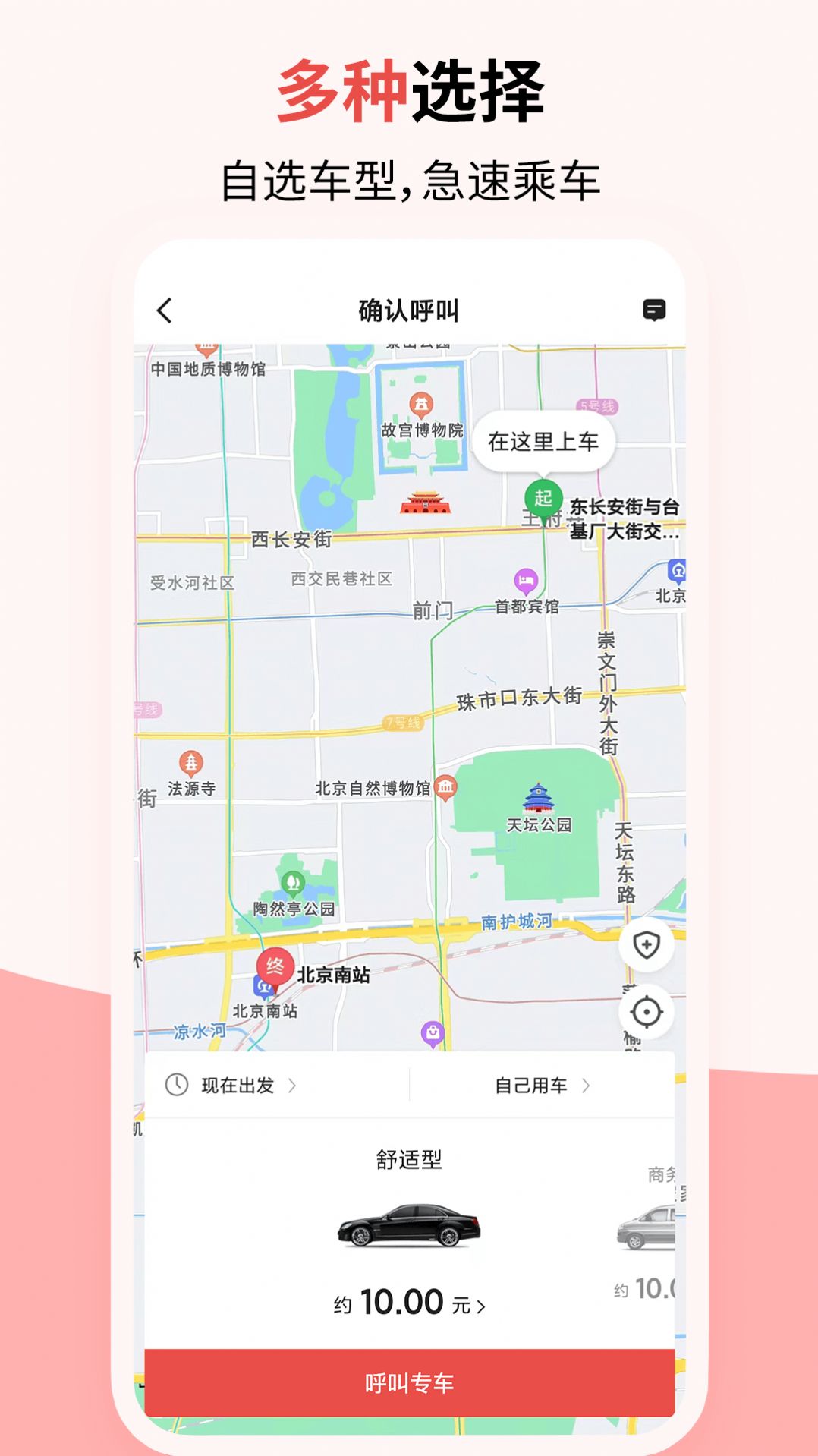 3、不仅提供了多种车类型选择,还支持在线导航、实时路况查询等实用功能。