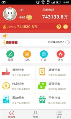 赚钱宝集成的多个任务频道都是