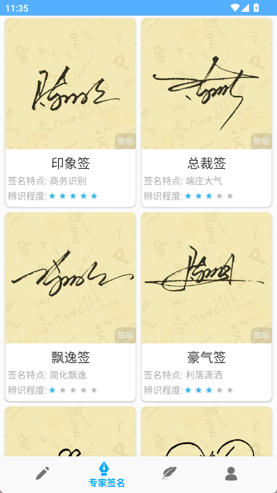 2、专家签名界面有丰富的模板