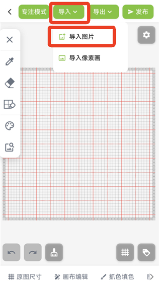3、点击上方第二个导入,再点击第一个【导入图片】手机相册里的图片。