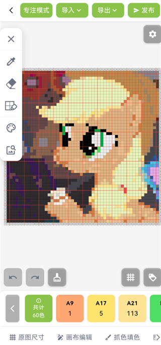 2、 画布尺寸调节 支持灵活设定画布长宽比例,适应不同尺寸的拼豆板需求。用户可根据实际制作计划调整分辨率,确保最终成品边缘整齐,避免豆子数量浪费或空间不足的情况发生。