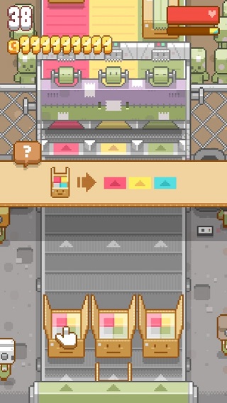 Box It Up! Inc.是一款像素风休闲益智手游,玩家化身包装工厂员工,在传送带上快速分拣颜色各异的盒子,采用竖屏单指操作,滑动屏幕即可控制角色移动,将对应颜色的盒子送入正确通道,轻松打发碎片时间。