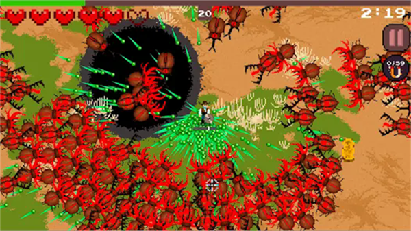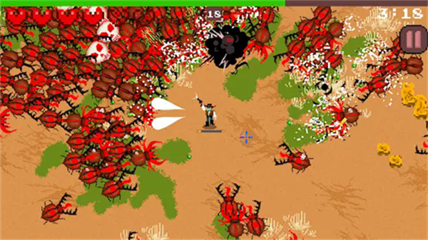 牛虻:西部生存是一款生存类肉鸽游戏。作品当中,会面对数量庞大的昆虫群体,每个人的任务就是借助各类手段消灭这些虫子,保障自身安全。采用了肉鸽机制,每一次游玩过程都是崭新的冒险经历。开局随机获得武器与被动技能,虫群种类包括甲虫、飞蝇、蜘蛛等,每种敌人具备不同移动规律与攻击方式。赶快下载使用吧!