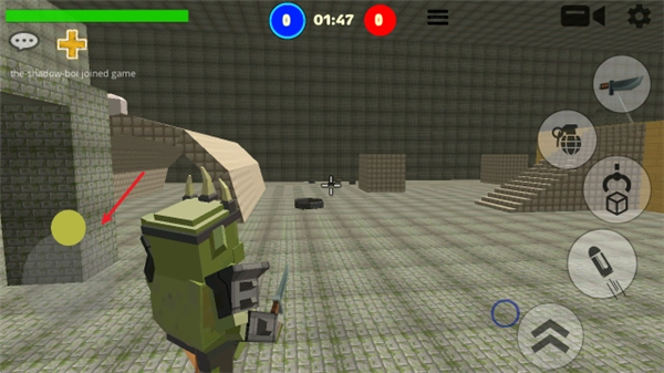 1、在主界面点击BATTLE按钮就能匹配进入战斗场景,进入后通过拖动左侧屏幕来控制角色移动。