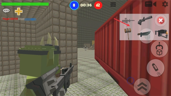 2、进入游戏后,左上角的加号为菜单按钮,打开菜单即可选择各类物品进行建造;带有锁图标的物品需前往商店购买解锁。右上角的枪械图标点击可切换武器,切换前提是玩家等级达标且已拥有该武器。当飞机、汽车等载具刷新后,靠近载具会出现开门图标,点击即可乘坐。此外,按住跳跃键可实现飞行,需注意屏幕上方的蓝圈(燃料条),燃料耗尽后会出现英文提示,飞行功能将无法使用。