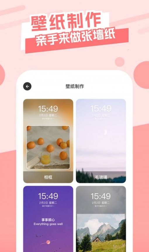 3. diy功能:除了提供现成的壁纸外,软件还支持用户自定义壁纸,用户可以根据自己的喜好调整壁纸的尺寸、颜色等。