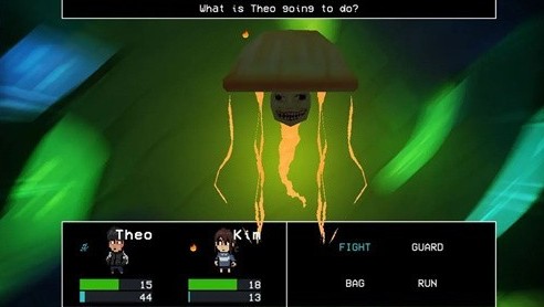 2.回合制战斗(核心)经典回合制模式,无自动作战功能,需手动选择攻击、防御、使用道具或释放技能。敌方均为定制化首领对战,无重复杂兵,包含人脸锤头鲨、畸变海龟、变异水母及最终首领海豚。成长系统:击败怪物可获取经验值,升级后解锁全新技能,稳步提升生存与作战能力。临时武器:可在馆内搜寻消防斧等道具,作为临时作战装备使用。