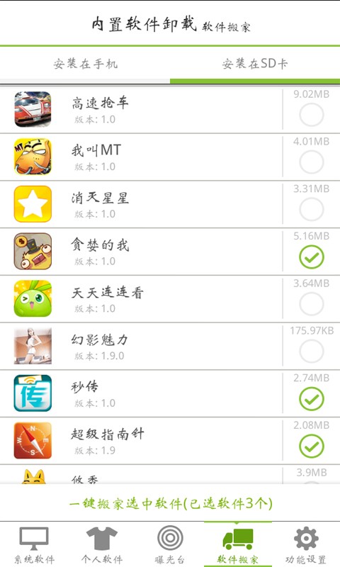软件搬家,一键移动手机软件到手机内存或者SD卡,手机储存大瘦身