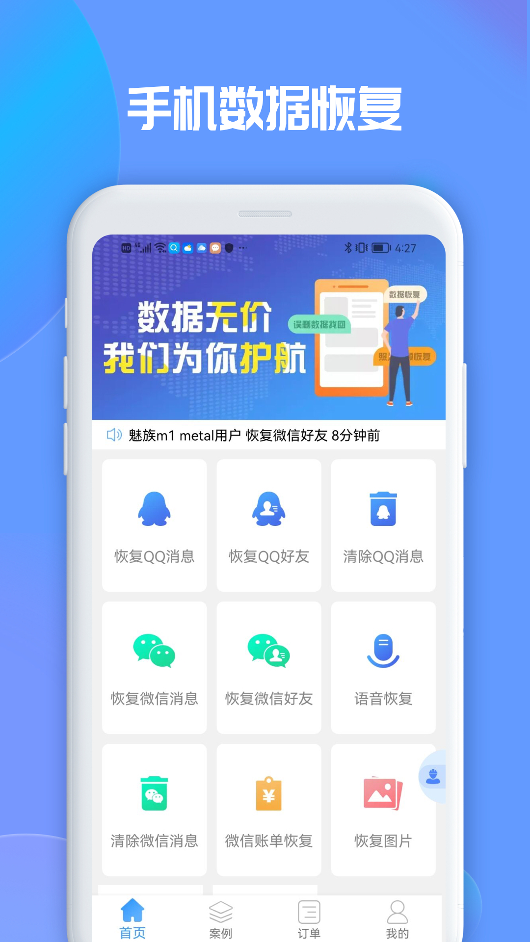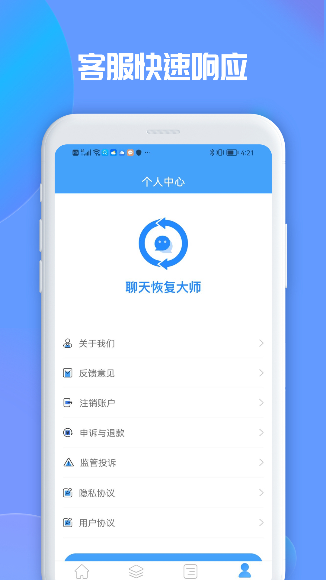 对象惹自己生气了,于是一气之下删除了对方的微信号,积攒几年的聊天记录也随之被清除了,心痛吗?后悔吗?和好时这种感觉会更甚。快来使用这款聊天恢复大师app吧,它是后悔药,是弥补错误的最佳工具,可以恢复用户删除的各种应用软件的聊天记录,找回那些回忆。
