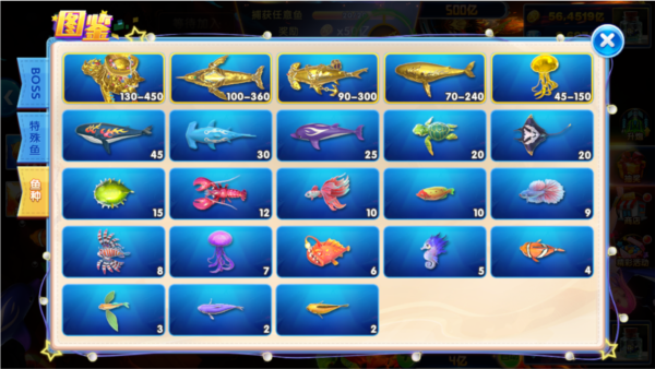 6、捕鱼赢金币:最重要的金币获取方式就是大家在捕鱼场中根据自己的技巧捕鱼赢更多的金币!