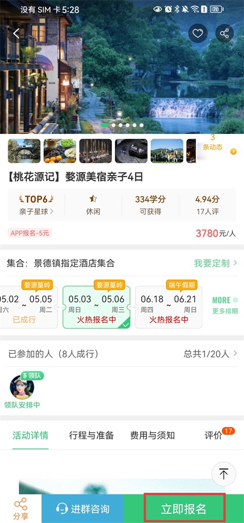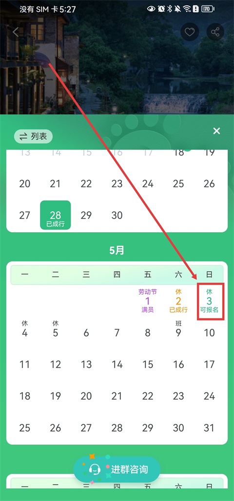 3、进入旅游路线详情页,点击【更多排期】查看可选的日期;