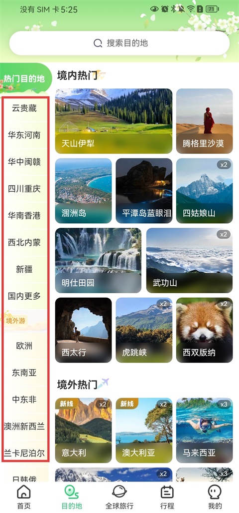 1、进入【目的地】页面,选择你感兴趣的旅游地;