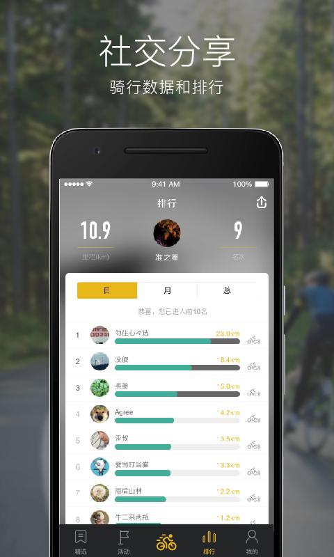 社交分享骑行数据和排行