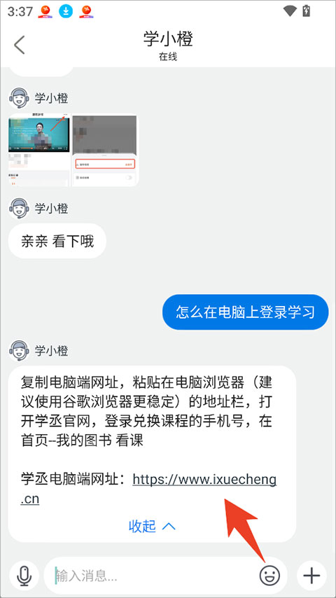 2、关于电脑端登录方式:用户可参照界面中提供的电脑端网址链接,将该地址复制到电脑上的浏览器中打开,即可在电脑端登录并开始学习。