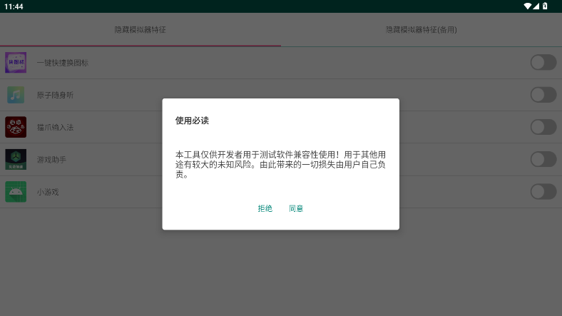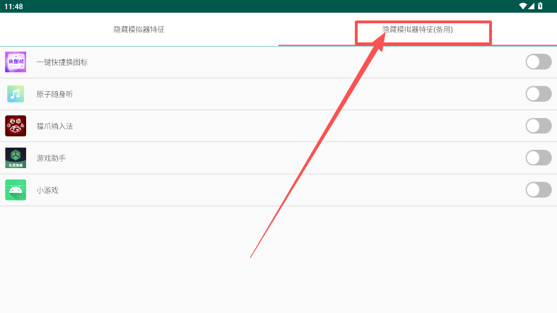 3、软件内置隐藏模拟器特征功能,可直接启用,规避应用对模拟器的检测。