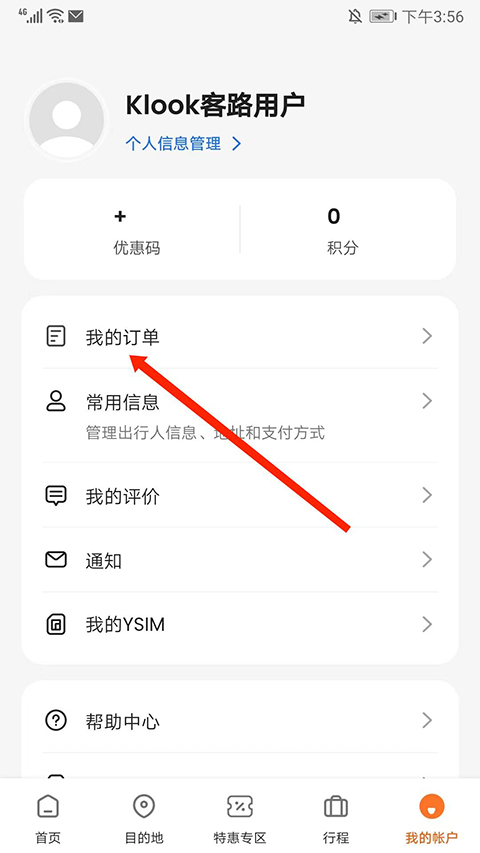 2、在个人中心内,找到并选择“我的订单”选项,进入订单管理页面。