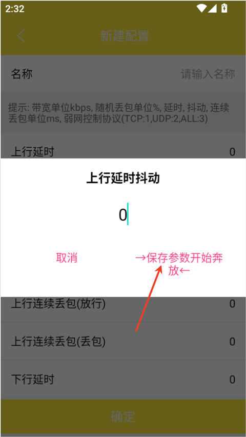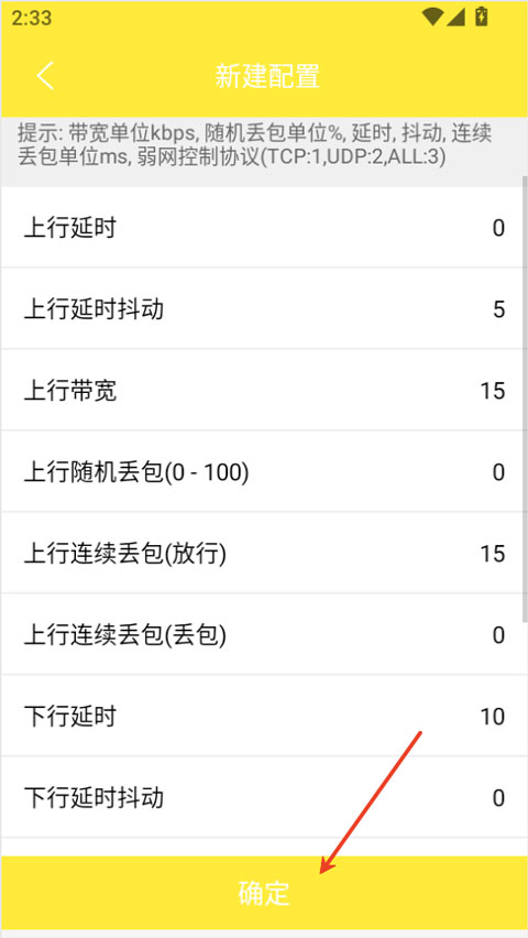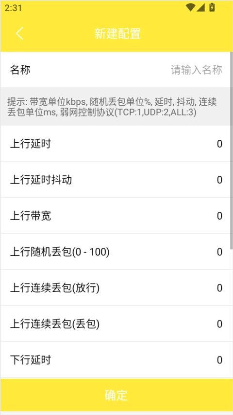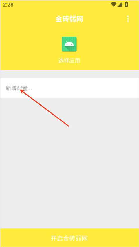 1、在本站下载并安装金砖弱网应用,打开后点击首页的“新增配置”按钮。