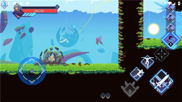 3、像素美术盛宴:采用手绘逐帧动画精心打造4大奇幻世界,技能特效绚丽夺目,兼顾操作清晰度,让玩家在视觉享受中顺畅战斗。