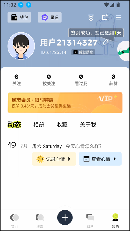 3、点击页面中间的按钮,即可发布自己的个人动态,分享生活点滴。