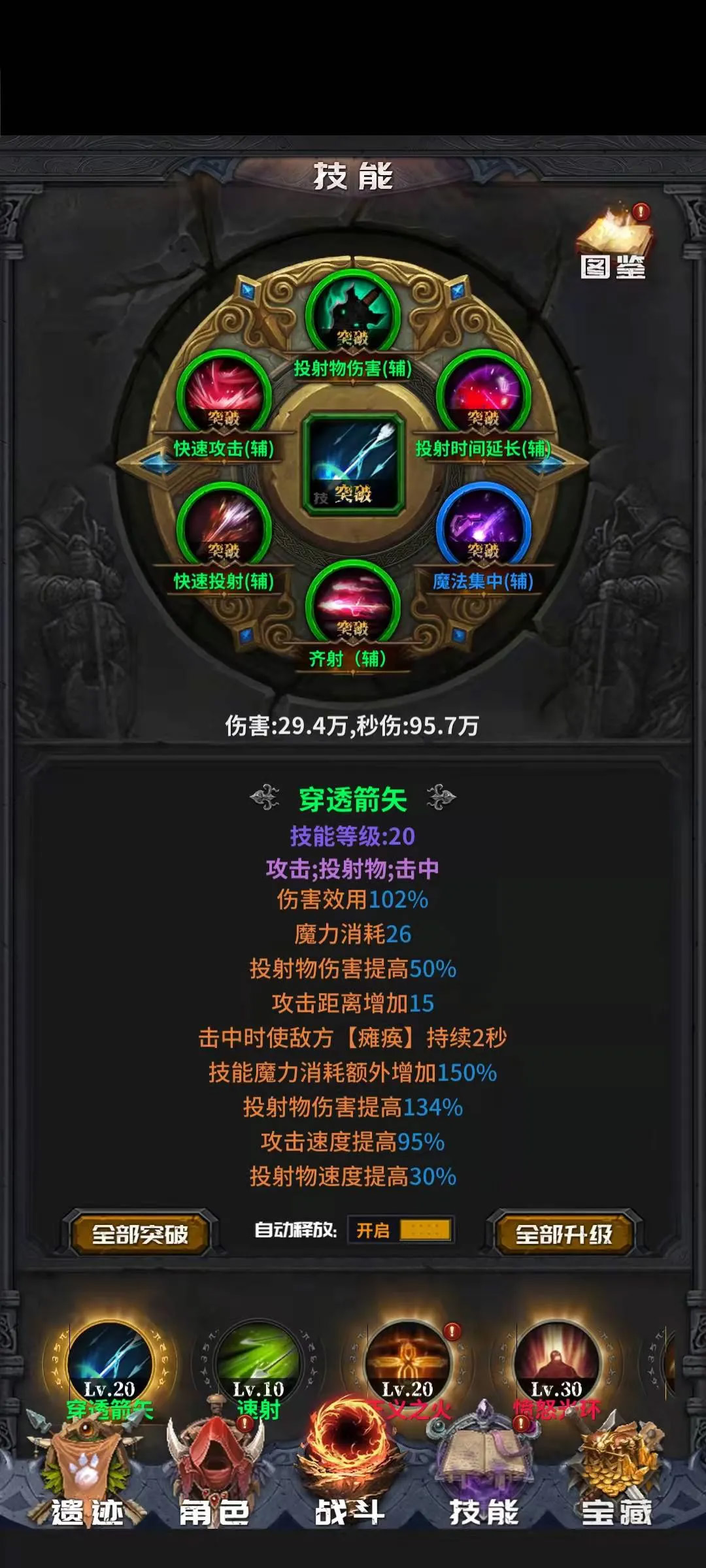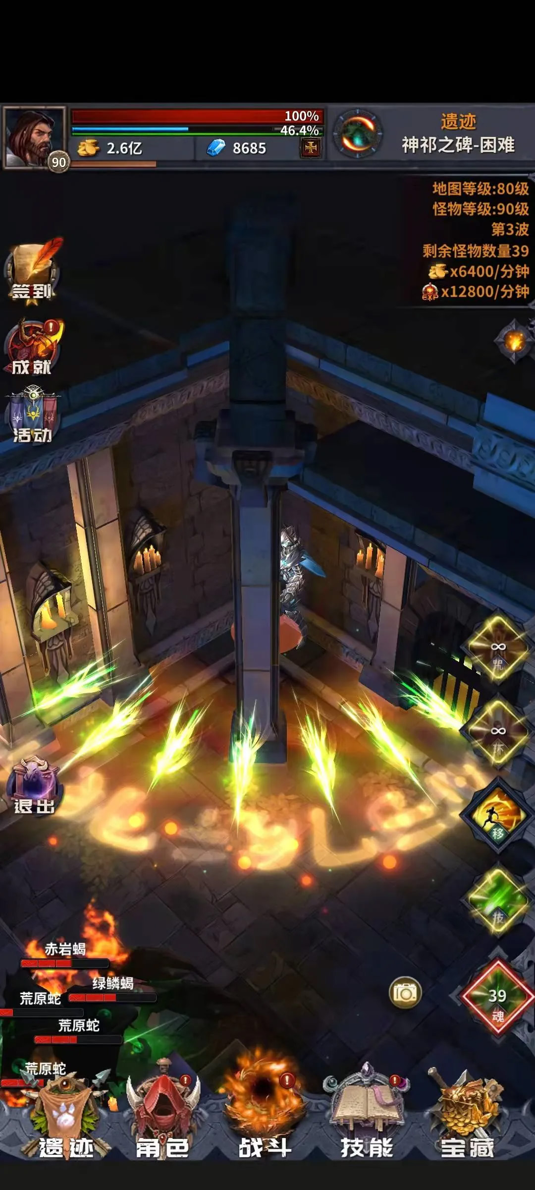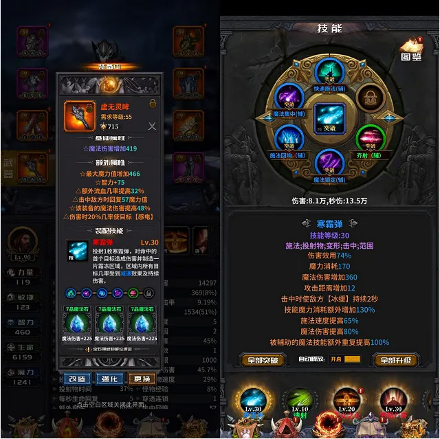 3、技能搭配:选择主力技能组合构建输出体系,符文碎片升级解锁更多分支效果。