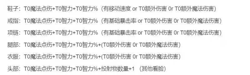 50的紫装这时候尽量选择T3,T4以上的词条(优先魔法伤害,其他有用的词条只要出了也行)把材料都霍霍完,一个装备洗出一条有用的词条就锁起来马上换下一个装备接着洗,千万不要一个装备洗出一条有用的就锁起来一直洗,最后每个装备有个4,5条有用的词条在进行数值重调。