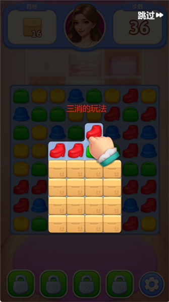 1.三消闯关获取资源,在限定步数内完成目标(如清除冰块、收集材料或达到指定分数),每关通关后获得星星与金币。