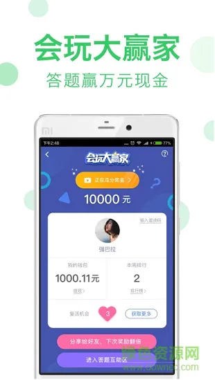 全民参与的有奖问答游戏会玩大赢家火热上线。轻松答题赢现金!