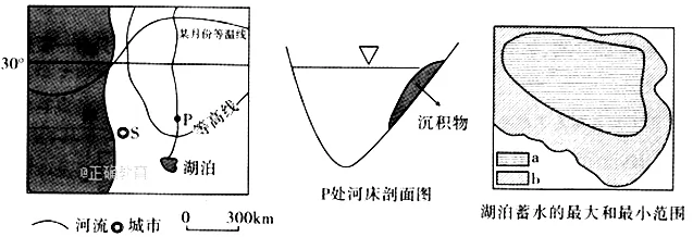 16.B【解析】根据等高线弯曲及河床剖面可知该地位于南半球,根据陆地等温线弯曲,可以确定为7月份等温线,根据纬度数值可以确定该地气候类型为地中海气候,此时温和多雨,湖泊水位为b,河流为汛期。故B项正确