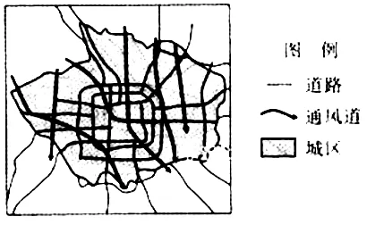 城市风道,又叫做城市通风廊道,就是在城市建设生态绿色走廊在城市局部区域打开一个通风口,郊区的风吹向主城区,增加城市的空气流动性。图9为北京市规划风道分布图。据图文材料,回答24-25题