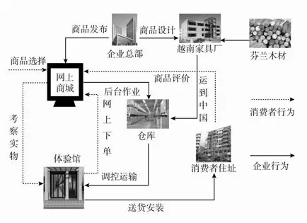 下图示意我国某家具企业设计、生产和销售等过程。读图完成下面小题。