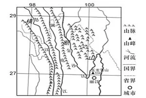 金沙江、澜沧江、怒江穿越崇山峻岭,在云南省境内并行奔流170多公里,形成了“三江并流”这一世界上绝无仅有的高山峡谷景观。2003年7月“三江并流”以举世无双的自然风光、世界罕见的生物多样性和各具特色的民族文化被联合国教科文组织列入《世界遗产名录》。然而,多年来“三江并流”地区旅游业发展缓慢,没有起到强力拉动当地经济增长的作用。如下图示意“三江并流”及附近地区简图。