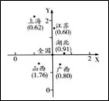 小题1考查区域经济发展差异。要抓住人均GDP和人均GDP增长率分别是衡量区域经济发展水平和发展速度的重要指标。从Y轴看,山西低于湖北,湖北低于江苏,广西高于全国,即其经济水平低于湖北;从X轴看,上海低于江苏,即上海经济发展速度低于江苏,结合X、Y轴表示的特征分析,各省经济发展水平和经济发展速度。小题2考查各省区产业发展方向。降低能耗是社会经济发展中的重要举措,它依赖于产业结构调整和技术水平的提高;山西能耗最高,山西主要是重化工业,所以应优化产业结构以降低能耗;广西最低,但经济发展水平不高,承接高能耗产业的经济发展基础较薄弱;上海和江苏较低,适于发展技术导向开型产业,而不应发展重型工业;湖北较高,应提高技术水平以降低能耗。