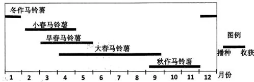 2016年,我国农业部正式发布《关于推进马铃薯产业开发的指导意见》,将马铃薯作为主粮产品进行产业化开发。马铃薯是喜冷凉的作物,下图示意我国西南地区马铃薯周年生产周期。读图,回答下面小题。